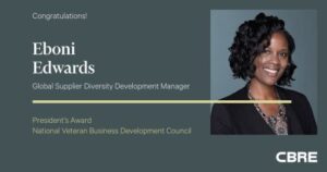 Eboni Edwards has exceeded support expectations for NVBDC’s Veteran Businesses and Supplier Diversity. NVBDC’s National Veteran Matchmaking Conference on November 9th and 10th went off without a hitch and with … Continue reading NVBDC awards Eboni Edwards, from CBRE, “Presidents Award 2022”.