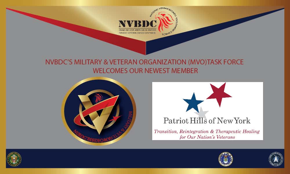 NVBDC’s MVO Task Force enables our organization to collaborate resources with our members to increase awareness and join together to establish a respected position in the industry supporting Veteran success in business. We currently have 23 Members and 2 honorary members. We are proud to announce our newest member Patriot Hills New York.