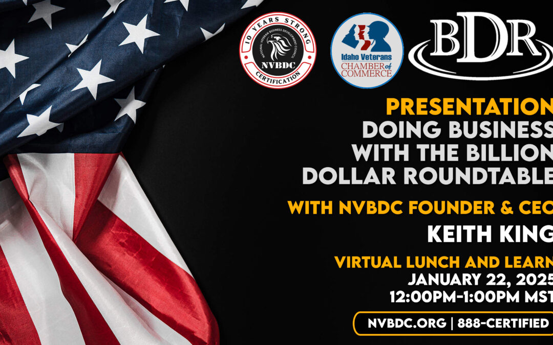 Join us for an impactful webinar hosted by the Idaho Veterans Chamber of Commerce, a proud NVBDC Military & Veteran Organization (MVO) Task Force member. This partnership reflects a shared commitment to empowering veteran entrepreneurs and expanding their access to opportunities in the corporate supply chain.
