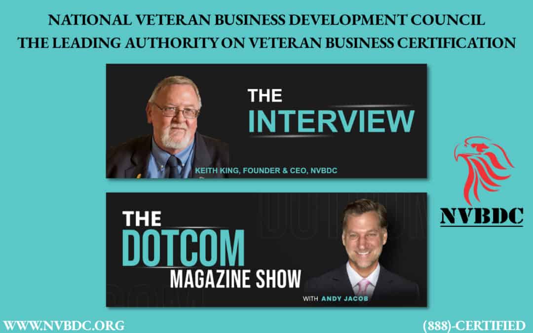 Have you ever used charismatic, informative, genuine, or dependable to describe someone? When describing our leader, Keith King, Founder and CEO of National Veteran Business Development Council (NVBDC), I have.  Keith deserves every bit of these to describe his personality and his passion for helping veteran businesses.  Please don’t take my word for it; in a recent interview with Andy Jacob, CEO, DotCom Magazine, Keith tells the story of how NVBDC became the leading certification authority for Service-Disabled and Veteran-Owned Businesses.