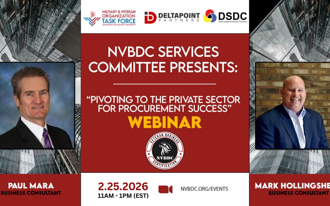 The National Veteran Business Development Council (NVBDC), through its Services Committee, is proud to announce an upcoming training session designed specifically to help certified Service-Disabled and Veteran-Owned Businesses (SD/VOBs) strategically pivot into private sector procurement opportunities.