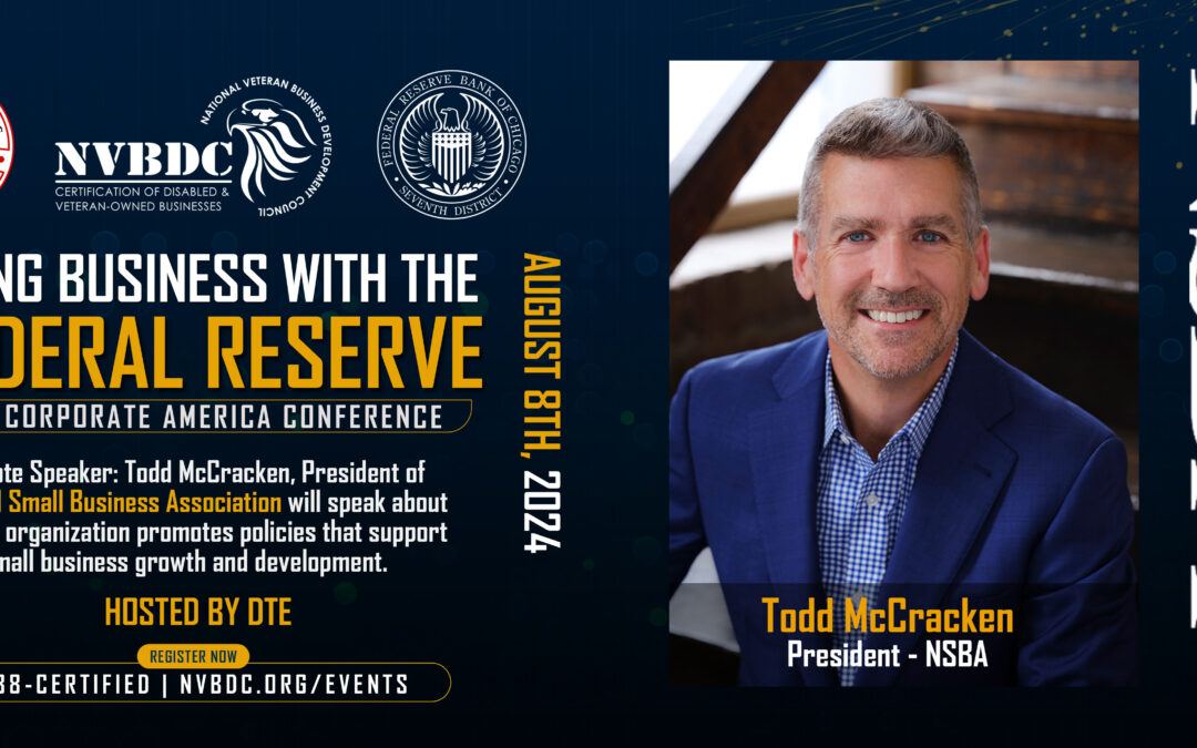 The National Veteran Business Development Council (NVBDC) is thrilled to announce that Todd McCracken, President of the National Small Business Association (NSBA), will be our esteemed Keynote Speaker at the 8th Annual “Doing Business with the Federal Reserve and Corporate America” Conference. The event is set to take place on Thursday, August 8th, and promises to be an unparalleled opportunity for Service-Disabled and Veteran-Owned Businesses (SD/VOB’s) to gain critical insights and network with industry leaders.