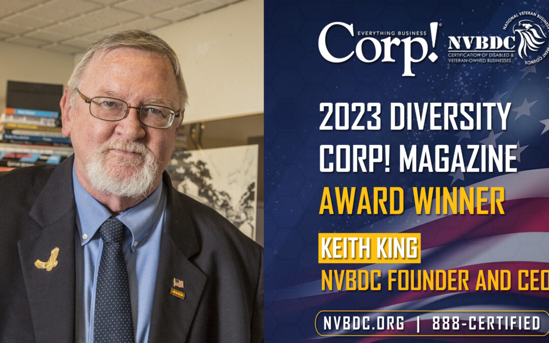 National Veteran Business Development Council (NVBDC) proudly announces that its Founder and CEO, Keith King, has been bestowed with the prestigious 2023 Diversity Award by Corp! Magazine. This recognition stands as a testament to Keith King’s visionary leadership and tireless commitment to advancing the inclusion of veteran-owned businesses in the supplier diversity marketplace.