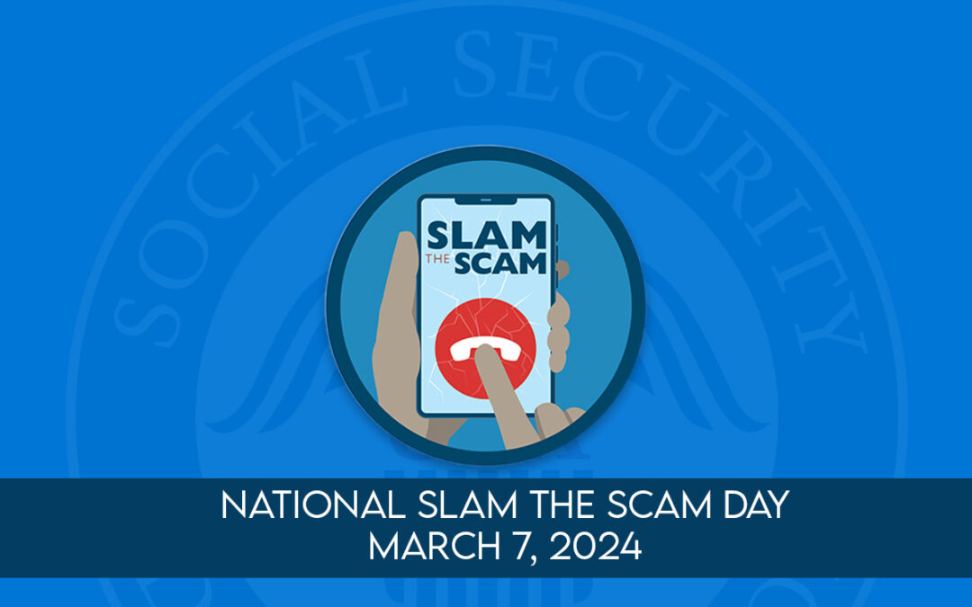 The Inspector General for the Social Security Administration (SSA) has designated March 7, 2024, as National “Slam the Scam” Day—an outreach campaign to raise public awareness of Social Security scams and other government imposter scams. This is part of National Consumer Protection Week, March 3 – 9, 2024.